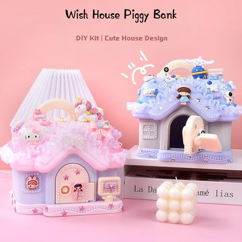 新しいウィッシュハウスピギーバンク子供手作りDIY制作材料パッケージクリーム接着剤デスクトップハウス収納ボックス